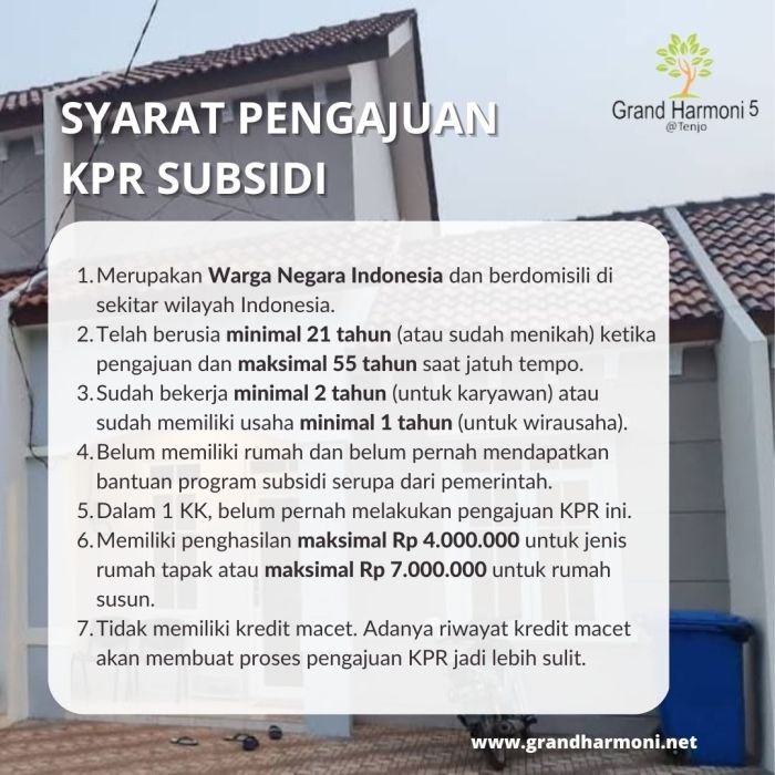 - Subsidi pemerintah: Pemerintah memberikan subsidi untuk membantu mengurangi beban finansial pemohon, sehingga lebih mudah untuk memenuhi syarat dan memiliki rumah.