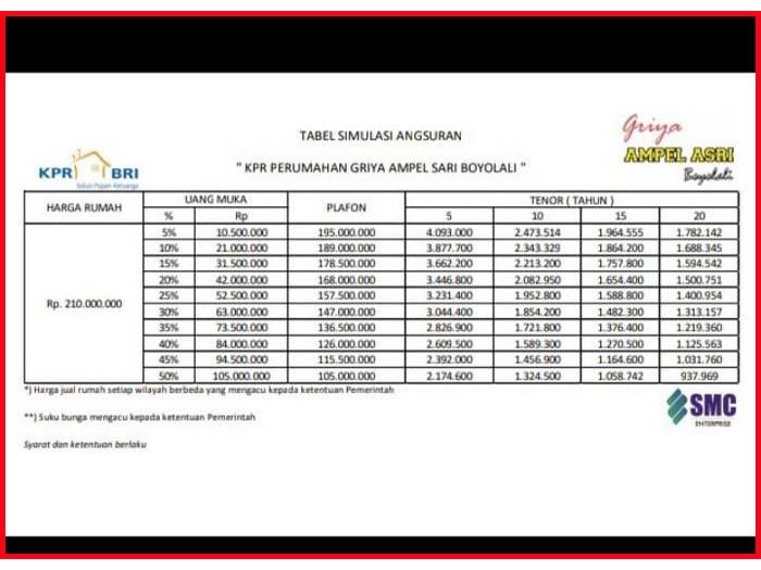 - Besaran cicilan bulanan.