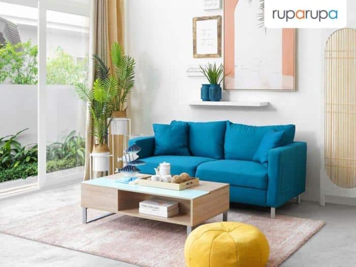 - Pilih warna yang harmonis dengan warna dinding, karpet, dan furnitur utama.